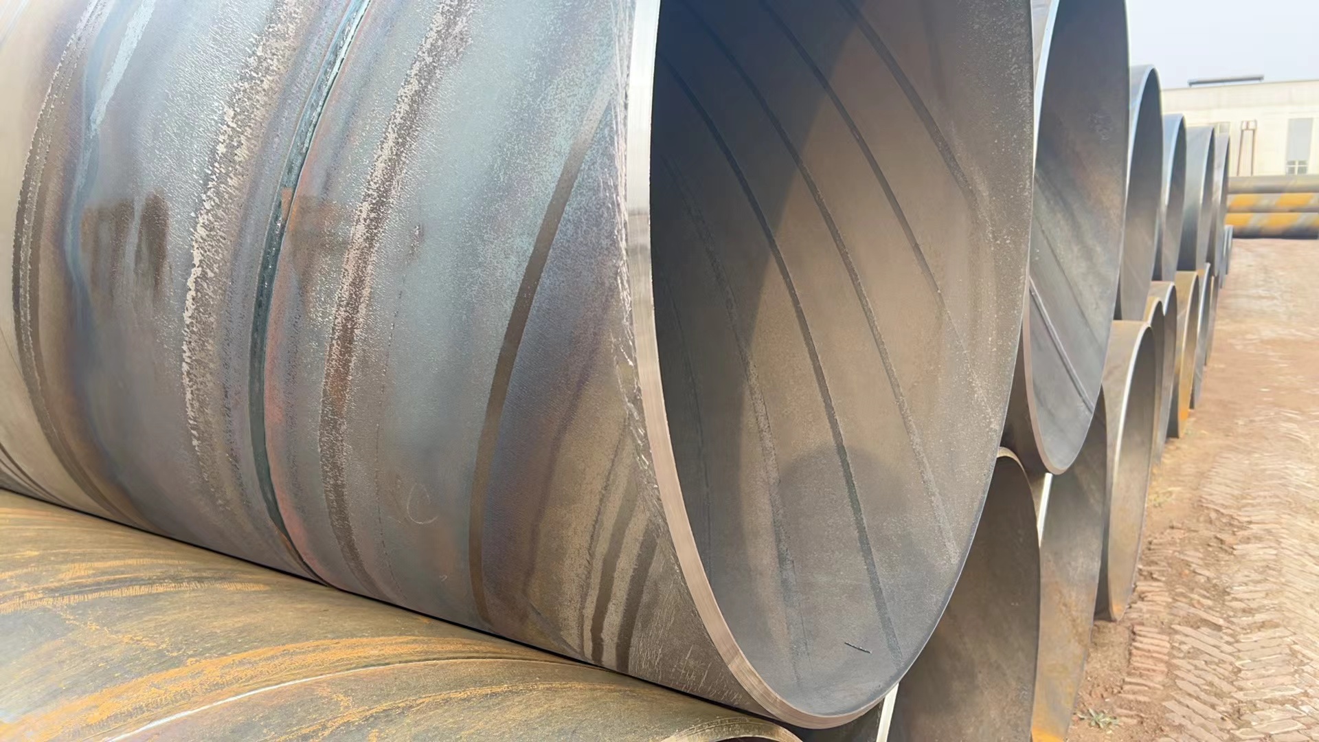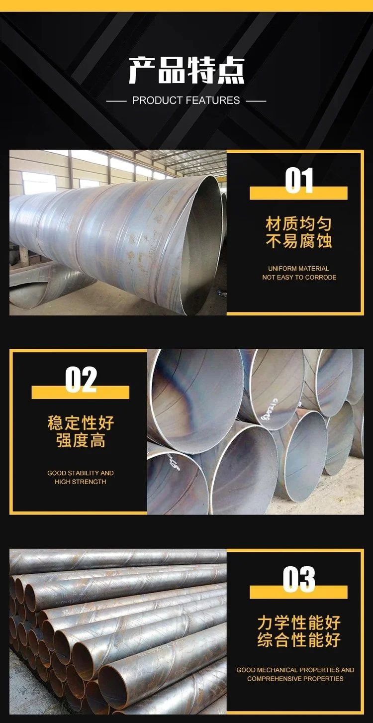 3.焊接準備:在卷曲成形后,將螺旋鋼管的兩端進行焊接準備。焊接準備主要包括采用氣體火焰或電弧切割等方式將管端切平整,清除毛刺和銹蝕,并進行管端的準備工作。