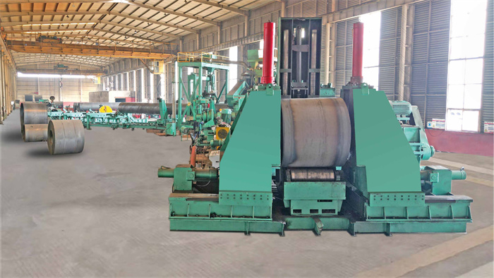 5.成型校正:將焊接好的螺旋鋼管經過成型機進行校正。成型校正主要是通過輥輪的作用將螺旋鋼管進行壓平,使其形狀更加規整、尺寸更加準確。