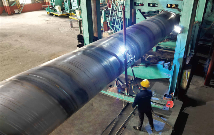 4.焊接:將螺旋鋼管的兩端進行焊接。一般采用雙面或單面自動埋弧焊接方法進行焊接。埋弧焊接具有焊接速度快、焊縫性能好、氣體保護效果好等優點。