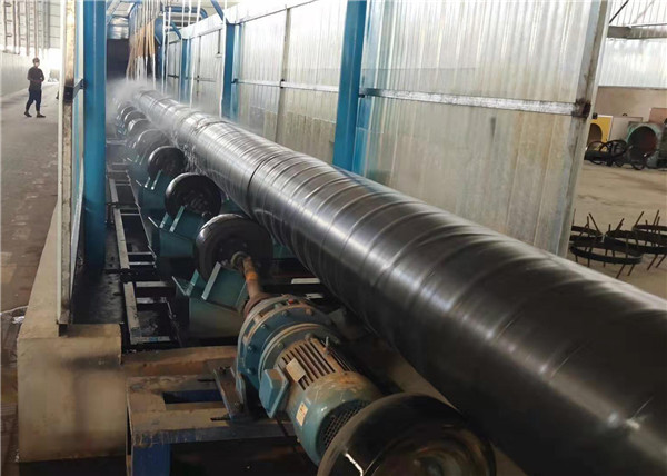 環氧粉末防腐層固化:環氧粉末一般在30s內膠化,1.5min內固化,通過控制噴涂和冷卻之間的距離,來保證固化時間,固化后形成一層表面光滑,致密堅定的涂層整體。固化成型后的防腐層其防腐性能非常優越,耐化學腐蝕性好,涂層表面致密光滑、耐磨、耐高溫。