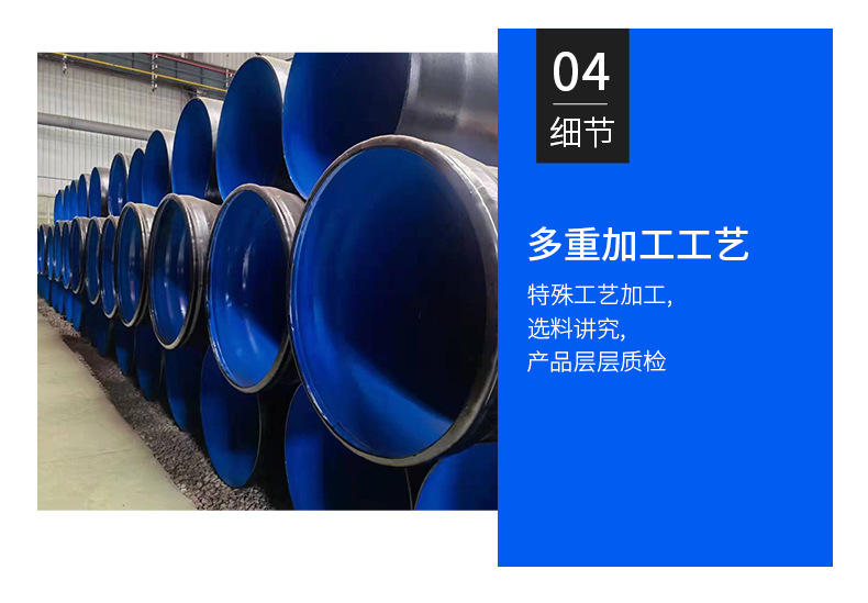大口徑輸水管道內環氧外聚乙烯涂塑鋼管工藝是結合熱固性環氧樹脂粉末涂料與聚乙烯粉末涂料的特性以及加工工藝后,將單層聚乙烯涂層與熔結環氧粉末涂層技術巧妙結合為埋地鋼管的腐蝕防護提供了良好的保護,經市場不斷地研究與完善后,管道內環氧(EP)涂層、外聚乙烯(PE)涂層是一種鋼管防腐的良好防腐組合方案,目前已成為市場上廣泛應用的一種大口徑輸水管道的產品。