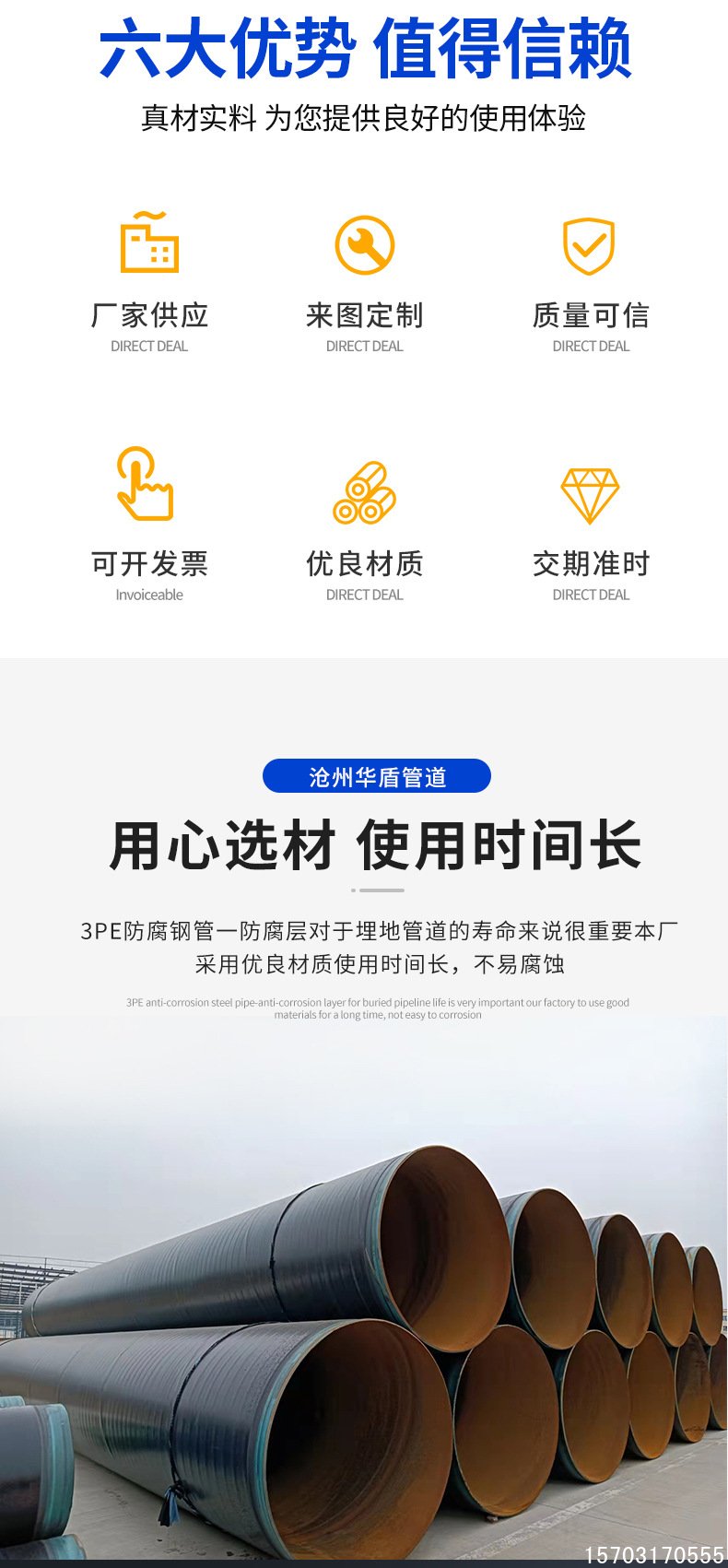 (三)主營螺旋鋼管,直縫鋼管,無縫鋼管,熱擴無縫管,防腐鋼管,保溫鋼管,鍍鋅鋼管,合金鋼管,不銹鋼復合管,打樁鋼管,壓力鋼管,丁子焊卷管,及管道配套用彎管,彎頭,法蘭,盲板,三通,四通,異徑管,大小頭,補償器,伸縮節,封頭,管帽等管道配件。公司產品可按需定制國標螺旋鋼管,長度可定尺,材質可定制,發貨期為 15 天。螺旋鋼管的常用標準為國內 SY/T5037 - 2000,GB/T9711.1 - 1997,國外 API 5L,廣泛應用于市政工程、石油天然氣輸送、海洋工程等領域。