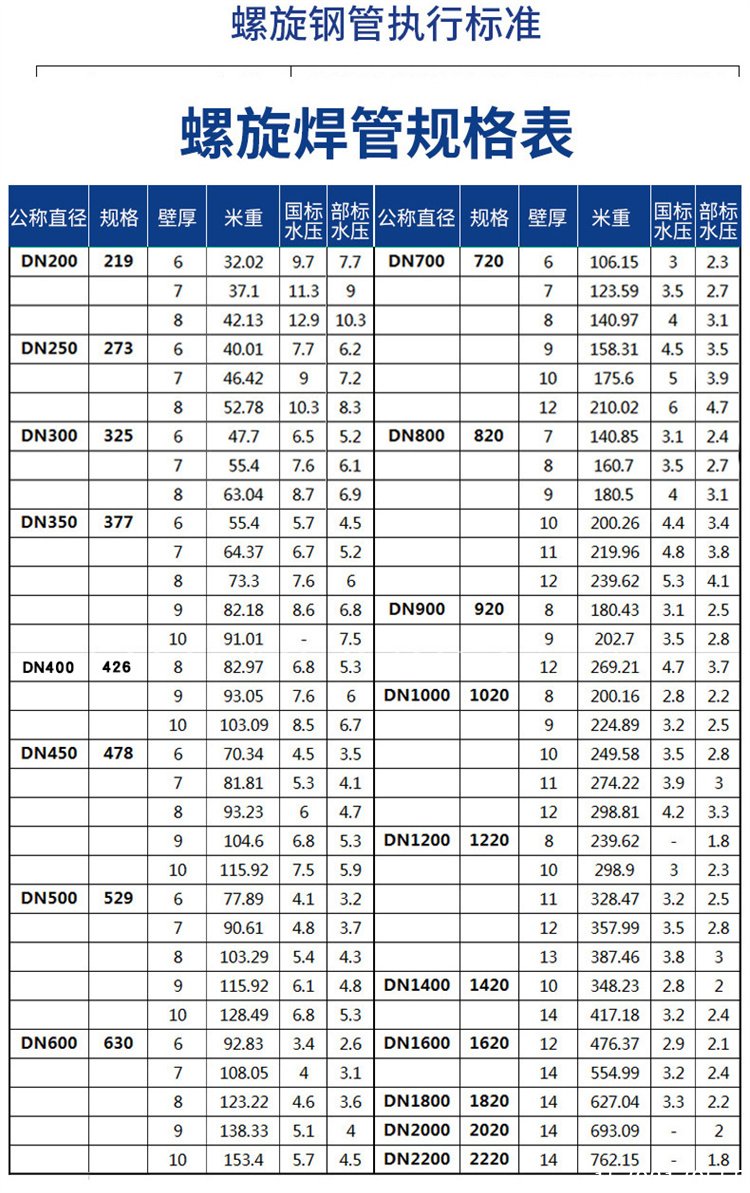 國標 9711 螺旋鋼管與部標螺旋鋼管在多個方面存在差異。從壁厚來看,國標 9711 螺旋鋼管壁厚一般下差 0.5mm,而部標螺旋鋼管下差 1mm,這使得國標螺旋鋼管在承受壓力和外力時更具優勢,能夠滿足一些對強度要求較高的工程場景。在檢驗方法上,兩者也有著明顯區別。國標 9711 螺旋鋼管采用更為嚴格的檢測方式,全部采用 X 光檢測,并進行水壓試驗,確保每一根鋼管都不存在內部缺陷和耐壓隱患;而部標螺旋鋼管僅做 30% 的 X 光抽檢,雖也進行 100% 的水壓試驗,但在焊縫內部缺陷的檢測全面性上不如國標 。
